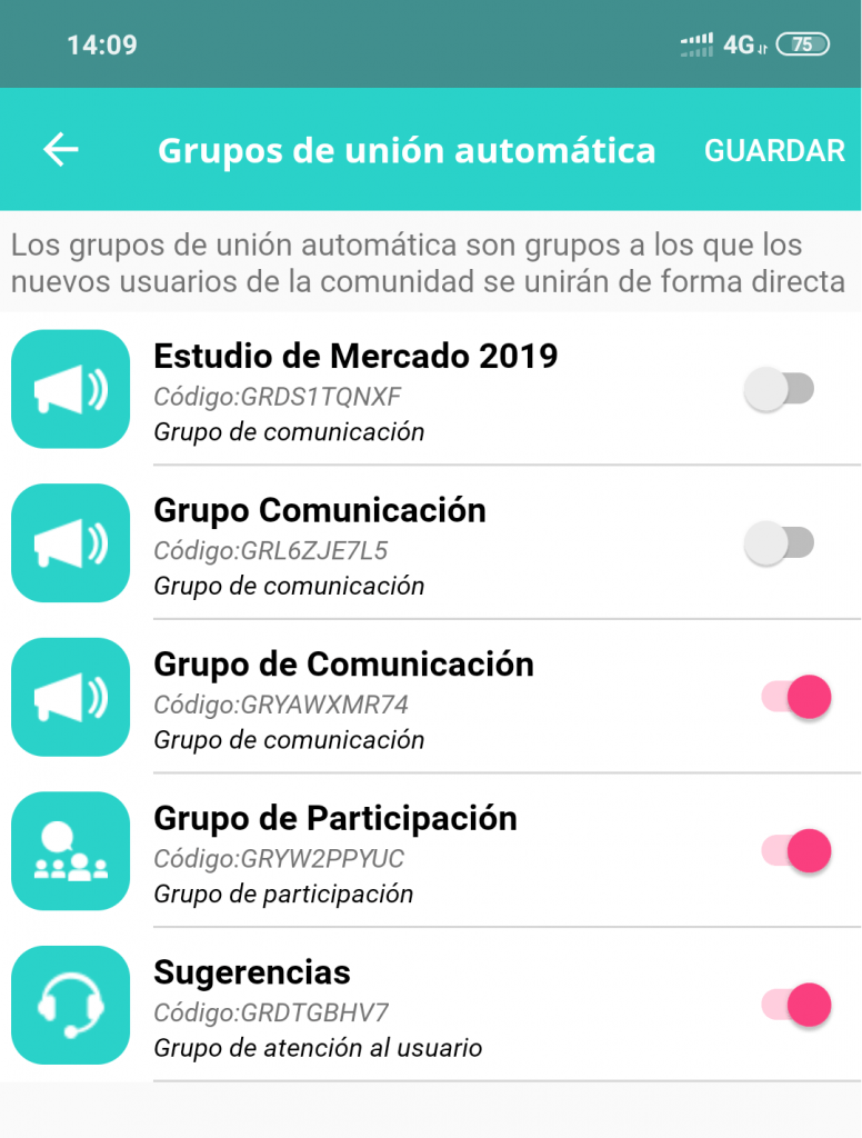 Por supuesto, puedes cambiar en la configuración del grupo su nombre y su icono. Puedes cambiar su tipo entre comunicación y participación, así como quitarlo de la lista de grupos de unión automática si así lo quieres.